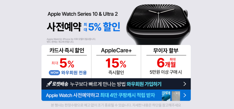 애플워치10 구매 이유의 결론을 정리해 보면, 59만 원이라는 가격은 이전 모델에 비해 완성도만 놓고 봤을 때 가장 합리적이고 저렴한 가격이라 생각한다. 구매에 대한 확신이 섰다면 사전예약 혜택 5% 가 제공되는 본문 상단 링크를 통해 구입하길 바란다.
