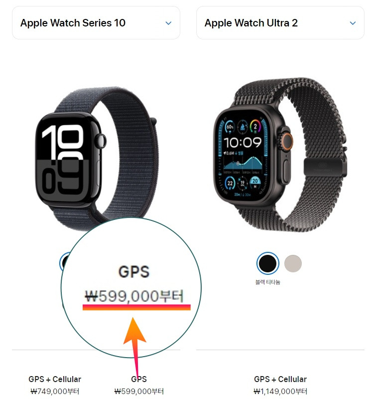 기존 애플워치 기준이라면 스테인리스 모델에만 적용. 다만, 스테인리스 모델의 경우 셀룰러가 포함되어 가격이 애플워치 울트라와 비슷한 100만 원대를 형성한다.