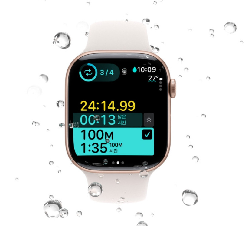 이외에도 수심 체크 기능이 들어간 것도 구매 포인트 중 하나다. 애플워치9에는 없는 기능이라 수상 활동을 좋아하는 분들에겐 장점이 될 수 있다.