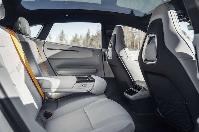 하지만 너무 딱딱하지 않으면서도 세련된 다자인은 측면, 측후면 와관에서 바라봤을 때 인상적인 디자인을 보여줍니다. 환상적인 인테리어가 폴스타 4의 인테리어 디자인에 스며들었습니다.
