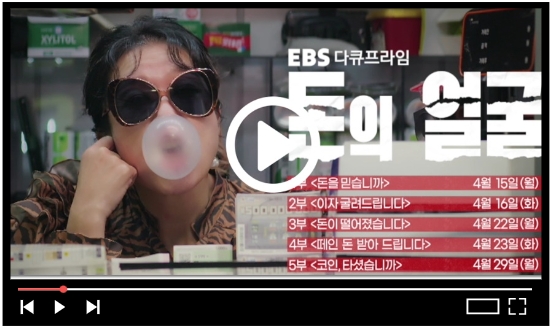 - EBS에서 제작한 다큐멘터리 "돈의 얼굴"은 돈과 인간의 관계를 탐구합니다. 2